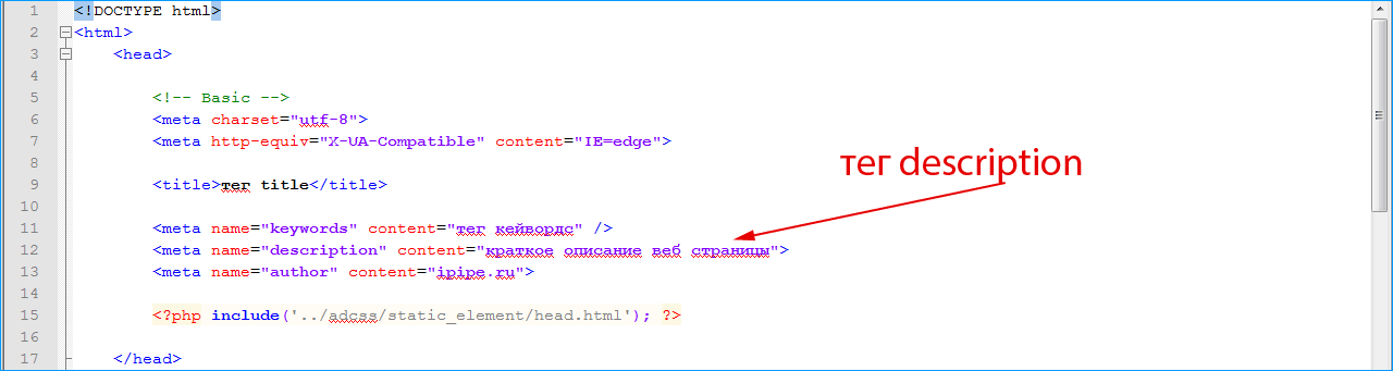 <meta name=»description» content=»Сюда необходимо вставить текст, который будет показан в выдаче»>