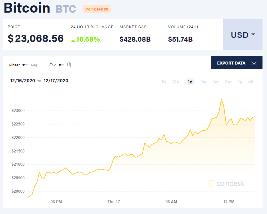 .Биткойн вырос примерно на 20% за неделю с тех пор, как производитель электромобилей Tesla Inc объявил, что у него есть 1 доллар.5 миллиардов биткойнов и будет принимать эту валюту в качестве оплаты. Он вырос более чем на 60% за год и более чем на 1100% с марта прошлого года.